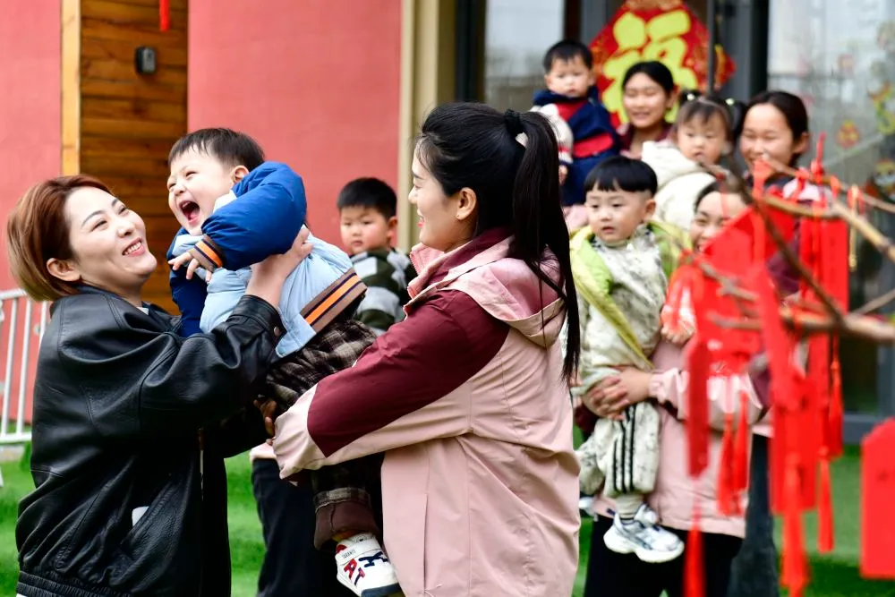2025年3月12日,家长在山东省菏泽市郓城县鹏瑞幼儿园接孩子回家。新华社记者 郭绪雷 摄