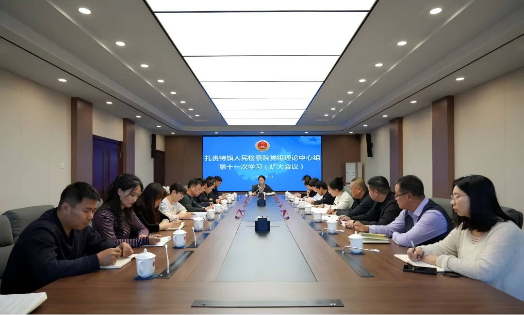 10月30日,扎赉特旗检察院召开党组理论学习中心组学习(扩大)会议,传达学习党的二十届四中全会精神,并研究部署贯彻落实工作。扎赉特旗检察院党组书记、代理检察长迟文主持会议,班子成员、环节干部参加会议。