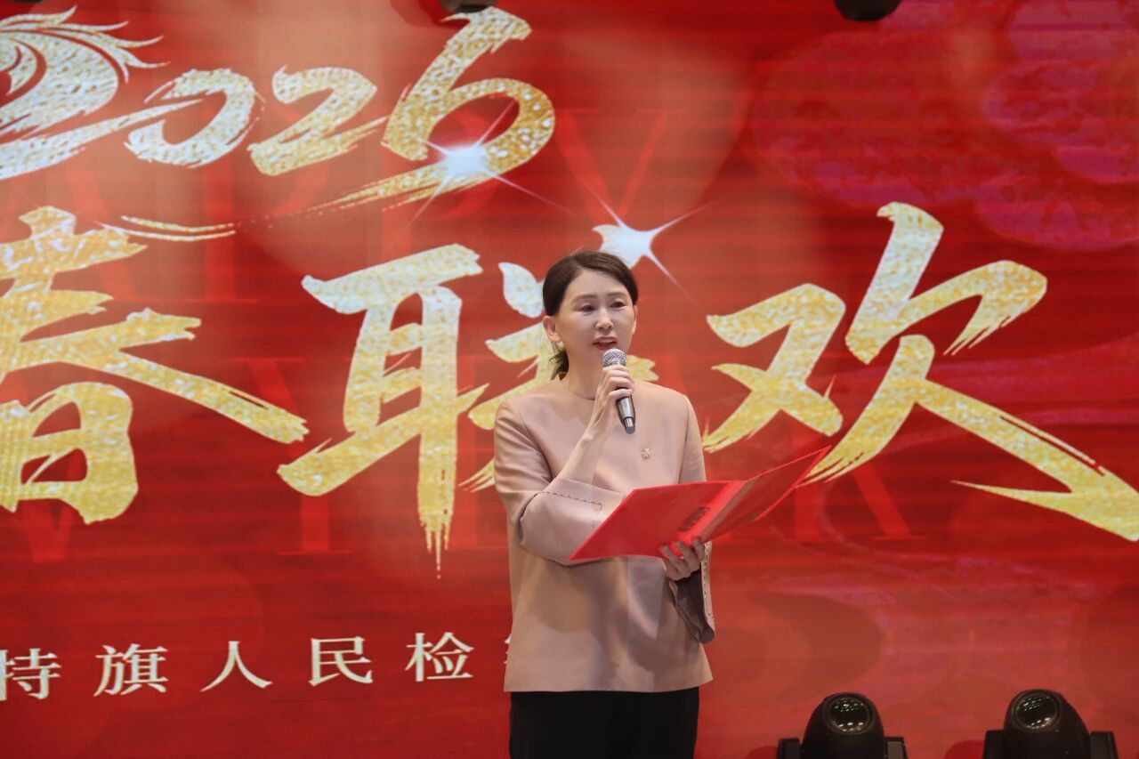 扎赉特旗检察院党组书记、检察长迟文在联欢会上发表新春致辞。她代表院党组向一年来忠诚履职、辛勤付出的全体检察人员,以及默默支持检察工作的家属们,致以诚挚的问候和新春的祝福。她鼓励大家在新的一年里守正创新、勇担使命,以更加昂扬的姿态投身检察事业。