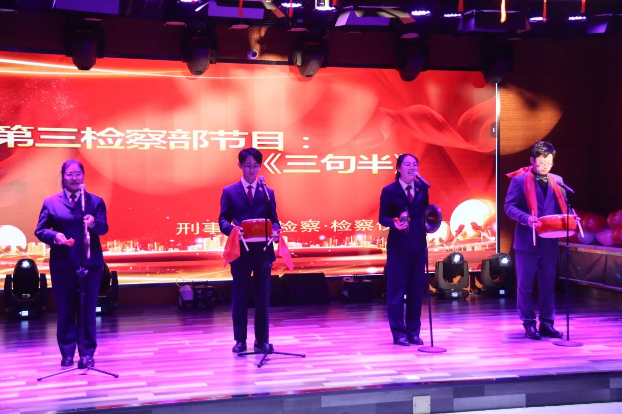 伴随着热情洋溢的开场舞蹈《开门红》,联欢会正式拉开帷幕。整场演出由扎赉特旗检察院各部门检察人员自编、自导、自演,节目形式丰富多样,既有温情流露的歌唱,也有铿锵有力的朗诵,更有活泼诙谐的快板与舞台剧,生动展现了新时代检察人奋发有为、刚柔并济、多才多艺的立体形象。